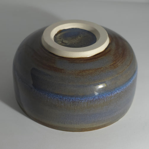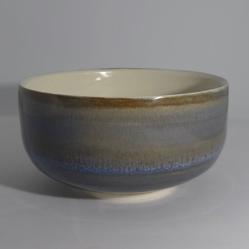 Wheel-thrown with porcelain clay. Satin glaze interior. Exterior is layered with two glazes causing the cosmic look. High fired at cone 5.