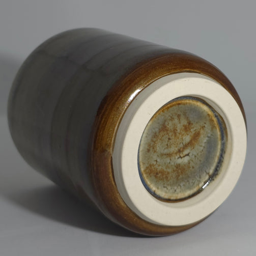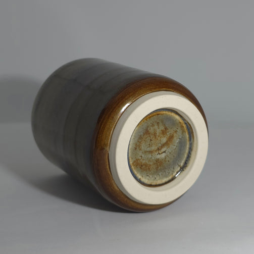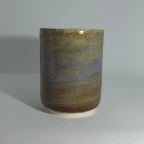 Wheel thrown porcelain cup with a subtle cosmic exterior glaze and a satin interior glaze. High fired at cone 5.